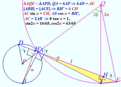 <math>\angle CAE = \angle ABH' = \alpha</math> (perpendicular sides) | |||