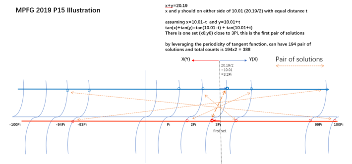 As we can see, each value of < | As we can see, each value of <imath>x</imath> matches a value of <imath>y</imath> on the other side of the <imath>y</imath>-axis. Because <imath>x + y = 20.19</imath>, which is approximately <imath>6.42 \pi</imath>, 6 values of <imath>x/y</imath> close to <imath>-100 \pi</imath> cannot be taken. | ||