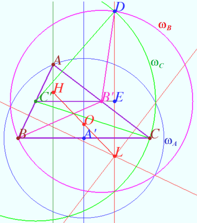 [[File:Euler line obtuse triangle.png|400px|right]] | |||