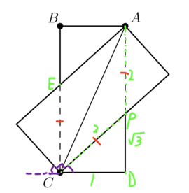Now assume there exists a point <math>F</math> on <math>AD</math>, where <math>FD = \sqrt{3}</math> | |||