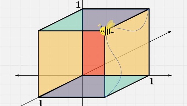 The first case is if the bee moves to the corner of a cube farthest away from the origin.
