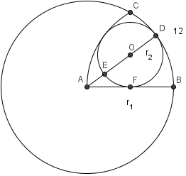 First, note the triangle <math>ABC</math> is equilateral. Next, notice that since the arc <math>BC</math> has length 12, it follows that we can find the radius of the sector centered at <math>A</math>. <math>\frac {1}{6}({2}{\pi})AB=12 \implies AB=36/{\pi}</math>. Next, connect the center of the circle to side <math>AB</math>, and call this length <math>r</math>, and call the foot <math>M</math>. Since <math>ABC</math> is equilateral, it follows that <math>MB=18/{\pi}</math>, and <math>OA</math> (where O is the center of the circle) is <math>36/{\pi}-r</math>. By the Pythagorean Theorem, you get <math>r^2+(18/{\pi})^2=(36/{\pi}-r)^2 \implies r=27/2{\pi}</math>. Finally, we see that the circumference is <math>2{\pi} | First, note the triangle <math>ABC</math> is equilateral. Next, notice that since the arc <math>BC</math> has length 12, it follows that we can find the radius of the sector centered at <math>A</math>. <math>\frac {1}{6}({2}{\pi})AB=12 \implies AB=36/{\pi}</math>. Next, connect the center of the circle to side <math>AB</math>, and call this length <math>r</math>, and call the foot <math>M</math>. Since <math>ABC</math> is equilateral, it follows that <math>MB=18/{\pi}</math>, and <math>OA</math> (where O is the center of the circle) is <math>36/{\pi}-r</math>. By the Pythagorean Theorem, you get <math>r^2+(18/{\pi})^2=(36/{\pi}-r)^2 \implies r=27/2{\pi}</math>. Finally, we see that the circumference is <math>2{\pi}\cdot 27/2{\pi}=\boxed{(D)27}</math>. | ||