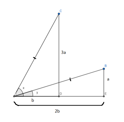 We draw 2 right triangles with angles x and y that have the same hypotenuse.