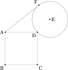Square <math>ABCD</math> has side length <math>s</math>, a circle centered at <math>E</math> has radius <math>r</math>, and <math>r</math> and <math>s</math> are both rational. The circle passes through <math>D</math>, and <math>D</math> lies on <math>\overline{BE}</math>. Point <math>F</math> lies on the circle, on the same side of <math>\overline{BE}</math> as <math>A</math>. Segment <math>AF</math> is tangent to the circle, and <math>AF=\sqrt{9+5\sqrt{2}}</math>. What is <math>r/s</math>? | Square <math>ABCD</math> has side length <math>s</math>, a circle centered at <math>E</math> has radius <math>r</math>, and <math>r</math> and <math>s</math> are both rational. The circle passes through <math>D</math>, and <math>D</math> lies on <math>\overline{BE}</math>. Point <math>F</math> lies on the circle, on the same side of <math>\overline{BE}</math> as <math>A</math>. Segment <math>AF</math> is tangent to the circle, and <math>AF=\sqrt{9+5\sqrt{2}}</math>. What is <math>r/s</math>? | ||