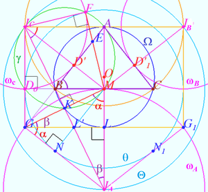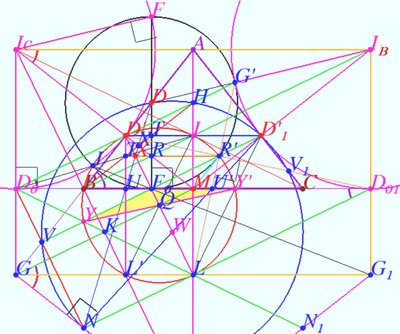 be the incenter, C-excenter, ortocenter, circumcenter, and midpoint
