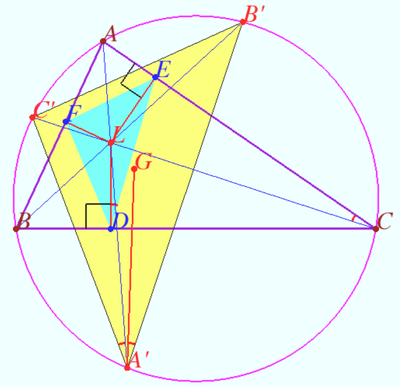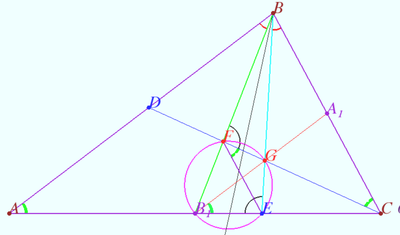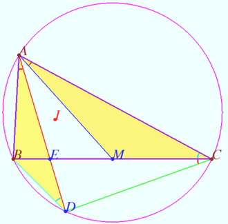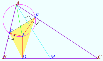 Let <math>AH</math> be the height, <math>AM</math> be the median, <math>LD \perp BC, D \in BC,</math> | Let <math>AH</math> be the height, <math>AM</math> be the median, <math>LD \perp BC, D \in BC,</math> | ||
