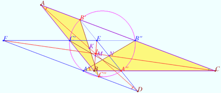 <math>MP</math> is the median of <math>\triangle MHA, HA || DQ \implies</math> the points <math>L, P,</math> and <math>M</math> are collinear. | <math>MP</math> is the median of <math>\triangle MHA, HA || DQ \implies</math> the points <math>L, P,</math> and <math>M</math> are collinear. | ||