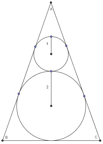 A circle of radius 1 is tangent to a circle of radius 2. The sides of