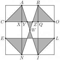 In equiangular octagon <math>CAROLINE</math>, <math>CA = RO = LI = NE =</math> <math>\sqrt{2}</math> and <math>AR = OL = IN = EC = 1</math>. The self-intersecting octagon <math>CORNELIA</math> | In equiangular octagon <math>CAROLINE</math>, <math>CA = RO = LI = NE =</math> <math>\sqrt{2}</math> and <math>AR = OL = IN = EC = 1</math>. The self-intersecting octagon <math>CORNELIA</math> encloses six non-overlapping triangular regions. Let <math>K</math> be the area enclosed by <math>CORNELIA</math>, that is, the total area of the six triangular regions. Then <math>K =</math> <math>\dfrac{a}{b}</math>, where <math>a</math> and <math>b</math> are relatively prime positive integers. Find <math>a + b</math>. | ||