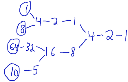 and work backwards, taking care to consider all possible inputs that could have resulted in any particular output. This produces the following set of possibilities at each stage: