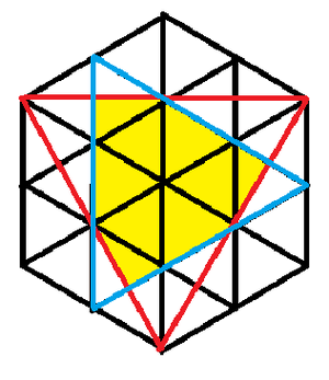 in the old diagram. We see that if we want to take the area of the new hexagon, we must subtract