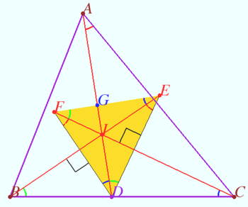 , we will find equations for perpendicular bisector of AD, and the other two angle bisectors. The perpendicular bisector is not too challenging: the midpoint of AD is