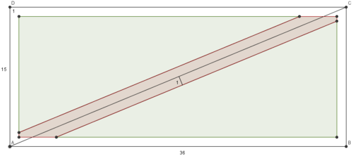 A circle of radius 1 is randomly placed in a 15-by-36 rectangle