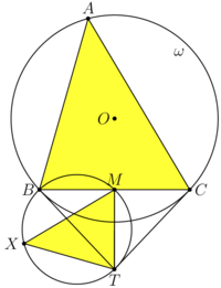 . Let M be midpoint BC. Then triangle ABC is similar to triangle XTM.