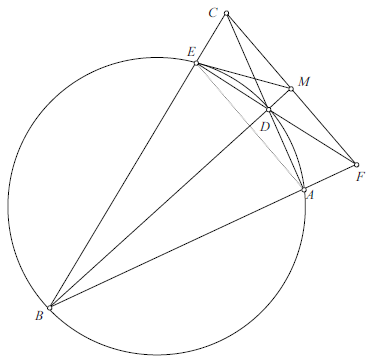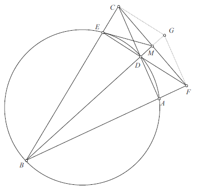 . This exact condition can also be visualized through power of M with respect to the circumcircle of triangle