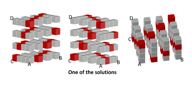 Now we can use this information for the 3D problem by looking at each of these squares as levels of the cube starting with the first level that has 4! configurations.