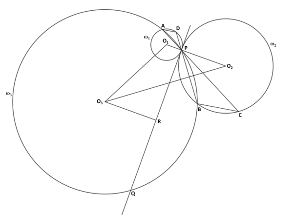 Let $O_1, O_2,$ and $O_3$ be the centers of $\omega_1, \omega_2$ and $\omega_3$ respectively.