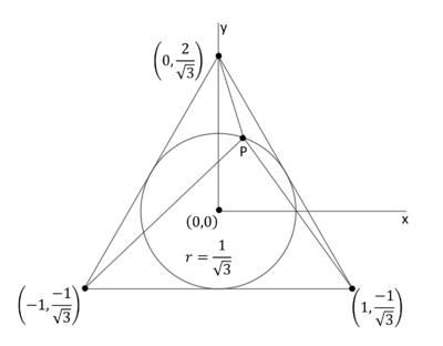 whose side has length 2, the circle