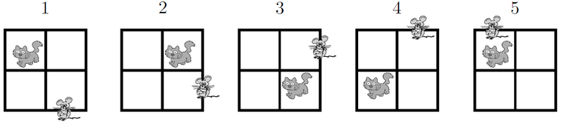 If the pattern is continued, where would the cat and mouse be after the 247th move?