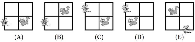 In the pattern below, the cat moves clockwise through the four squares and the mouse moves counterclockwise through the eight exterior segments of the four squares.