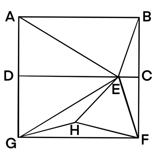 Because $GH=HE=HF$, $\angle GHF= \angle BEF=75^{\circ} + 75^{\circ} = 150^{\circ}$, $\angle GHE=360^{\circ}-150^{\circ}-60^{\circ}=150^{\circ}$, $\angle GHE=\angle GHF$.