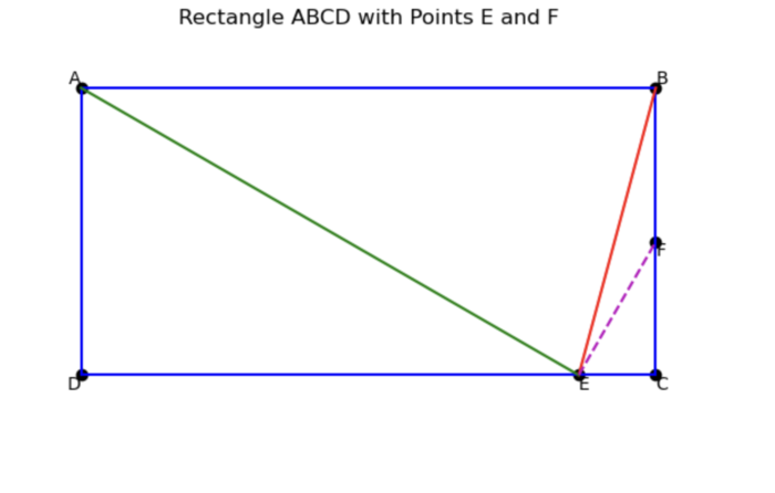 First, divide all side lengths by $10$ to make things easier. We’ll multiply our answer by $10$ at the end. Call side length $BE$ $x$. Using the Pythagorean Theorem, we can get side $EC$ is $\sqrt{x^2-1}$.