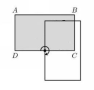 In the figure below, $ABCD$ is a rectangle with sides of length $AB = 5$ inches and $AD$ = 3 inches. Rectangle $ABCD$ is rotated $90^\circ$ clockwise around the midpoint of side $DC$ to give a second rectangle. What is the total area, in square inches, covered by the two overlapping rectangles?
