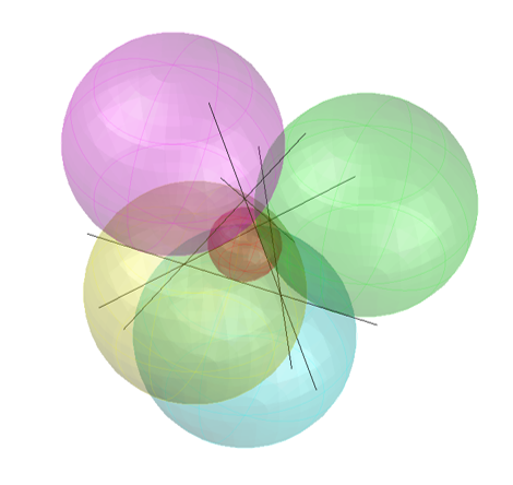 We will start with the sphere below the base of the tetrahedron opposite of vertex