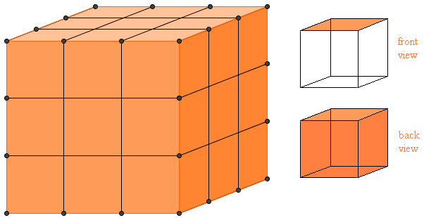For the six unit cubes and the centers of the faces of the large cube, we need that they show an orange face. This happens in
