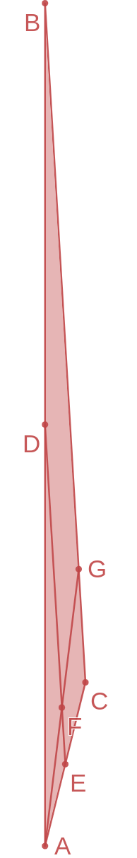 But we also know [EFGC]=3/4 [ACG], so [EFGC]=3 and then [CFG]=2. If [CFG]=2, then note that [FGB] must be 2*5=10.