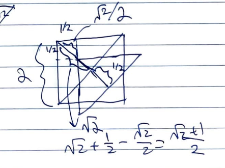 . However, we have to subtract off when it doesn't pass through the red square. Then, it's the hypotenuse of a small isosceles right triangle with side lengths of
