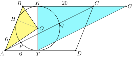 is a right-angled trapezoid and more importantly, the diameter of the circle is the height of the triangle. Therefore, we can drop an altitude from
