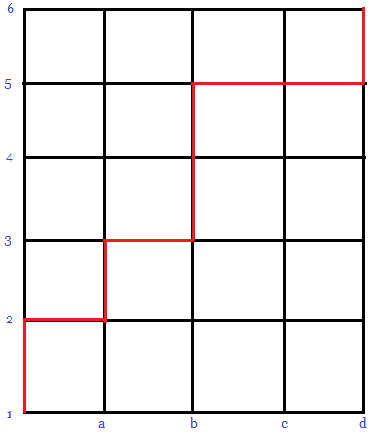The diagram for the elegant bijection used to solve AIME I 2001 #6.