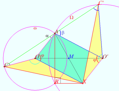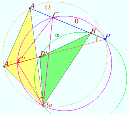 using the spiral similarity. Notation is shown on the diagram.
