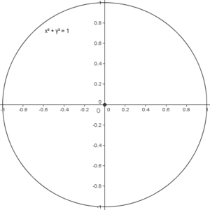 An unit circle centered at the origin can be used to calculate values for the basic trigonometric functions. Suppose we draw a ray starting from the origin and meeting the positive x-axis with an angle of